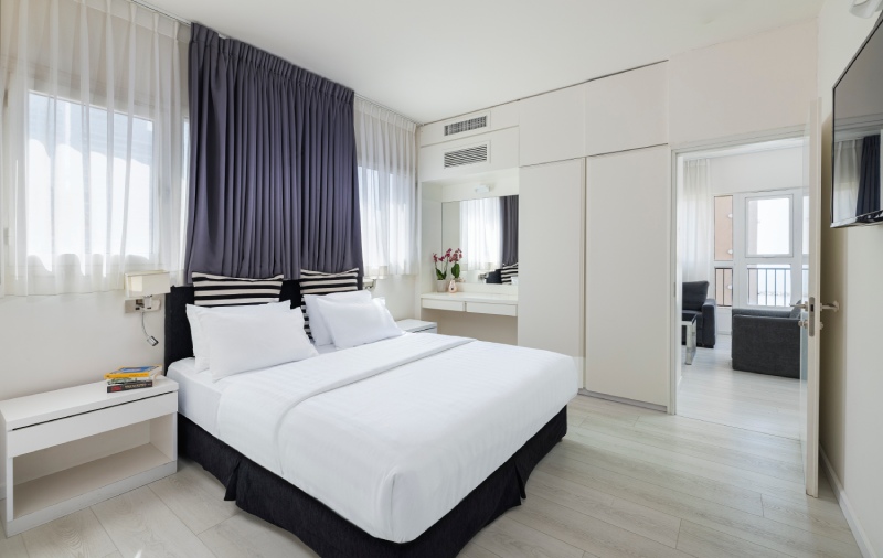 • סוויטות מרווחות הכוללות אזור סלון ומטבחון, מתאימות לשהיות קצרות וארוכות.