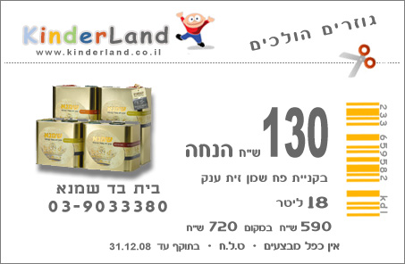 >>גוזרים הולכים – תגיעו עם הקופון המודפס ותקבלו הנחה לרכישת שמן זית שיספיק לכם לשנתיים…