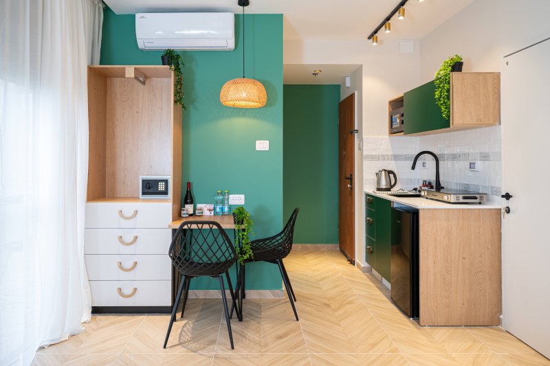 דירות סטודיו בגודל 30 מ”ר המתאימות לאירוח זוגי או זוג עם ילד/תינוק. בכל הדירות תיהנו מאבזור עשיר ומפנק: פינת אוכל, מטבח מאובזר עם מקרר, קומקום, מיקרוגל, כירה חשמלית, כלי בישול וכלי אוכל, ומיטה זוגית הניתנת לחלוקה לשתי מיטות יחיד נפרדות, מסך טלוויזיה עם חבילת ערוצים של Yes, ערכת קפה וכספת.