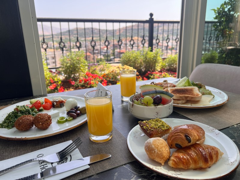 - חדר האוכל לארוחות בוקר – מרפסת גג מקורה בה מוגשת ארוחת הבוקר הכשרה של המלון מול נופי החרמון