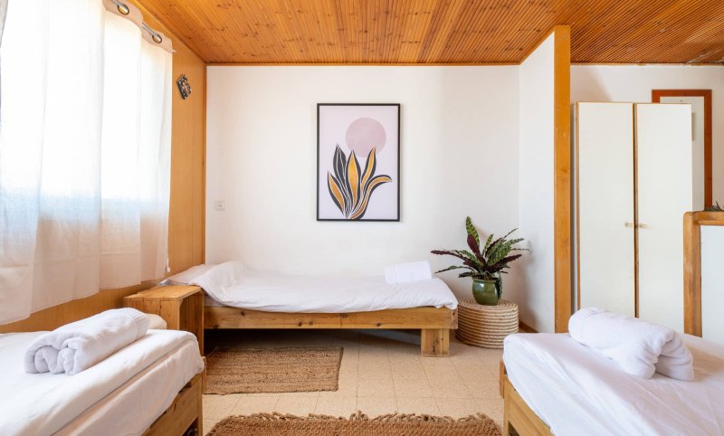 מה בפנים: מיטה זוגית (או 2 מיטות נפרדות) עם מזרני פרימיום ומצעים, אפשרות ל-2 מזרני ילדים.